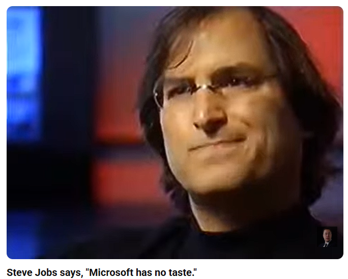 In that seminal interview, Steve lays out his vision for humanity of taking the very best of things to improve itself, casting Apple as true innovators and Microsoft as pedestrian followers.