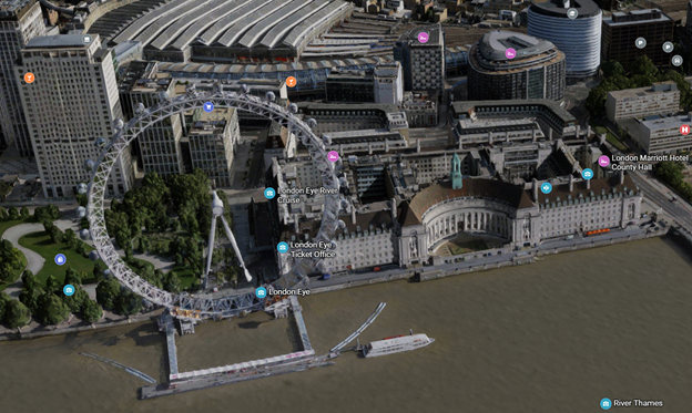 Unfortunately, when a licensing agreement exists then it also means at some point, one or both parties might decide to not continue it. Such has happened with Bing Maps, the consumer offering – it has dropped pretty much everything of interest beyond basic map and satellite views. A 3D option does offer some cartoonish generated models of some areas, though it’s a long way from being universal.